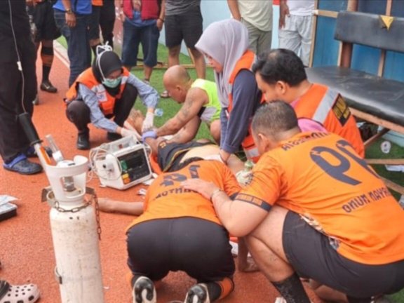 Suasana stadion yang semula riuh seketika berubah panik. Minimnya tenaga medis di lokasi membuat sejumlah rekan sesama mantan pemain bergerak cepat memberikan pertolongan pertama sebelum tim medis tiba.