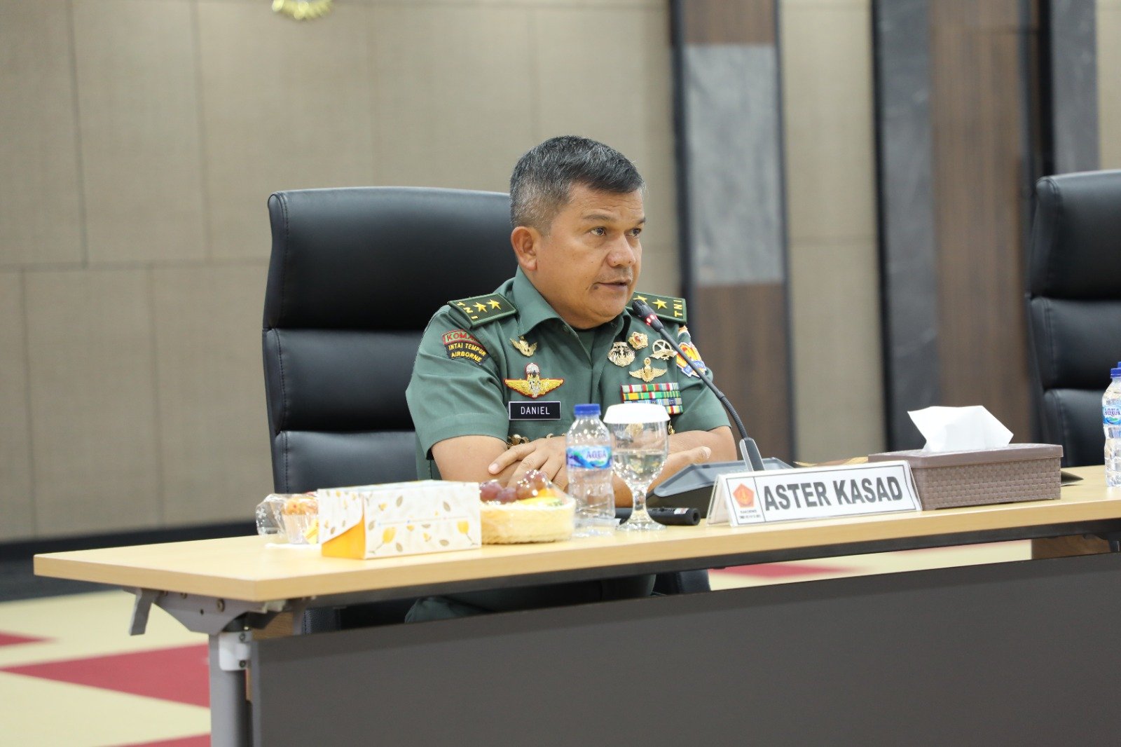 Aster Kasad Mayjen TNI A. Daniel Chardin, S.E., M.Si., memimpin dan sekaligus membuka Rakornis TMMD Ke- 118 TA 2023, dengan tema yang diusung, “Sinergi Lintas Sektoral Mewujudkan Kemanunggalan TNI-Rakyat Semakin Kuat”.
