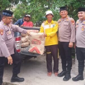 Polsek Pebayuran Salurkan 25 Sak Semen untuk Pembangunan Masjid Al-Barokah di Bekasi