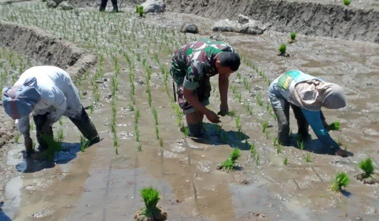 Di sela kegiatan penanaman padi tersebut, Babinsa meminta agar petani memanfaatkan lahan-lahan tidur untuk ditanami padi.