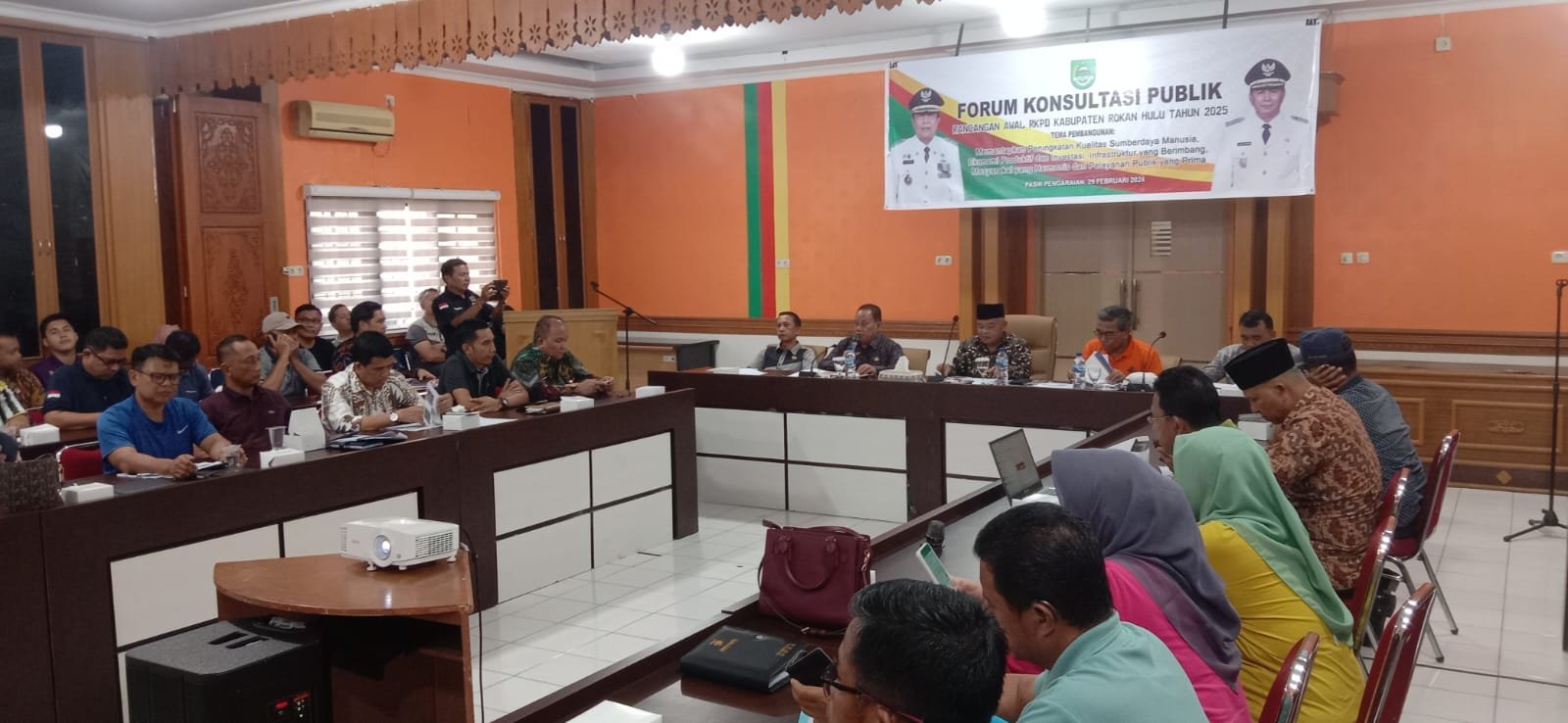 Radarjakarta.id | ROKAN HULU – Guna menentukan Rancangan Awal (Ranwal) Rencana Kerja Pembangunan Daerah (RKPD) Kabupaten Rokan Hulu (Rohul) Tahun 2025, Badan Perencanaan Pembangunan Daerah (Bappeda) Rohul menyelenggarakan pertemuan Forum Konsultasi Publik (FKP) di Aula Lantai II Kantor Bapeda, Kamis (29/2/2024).