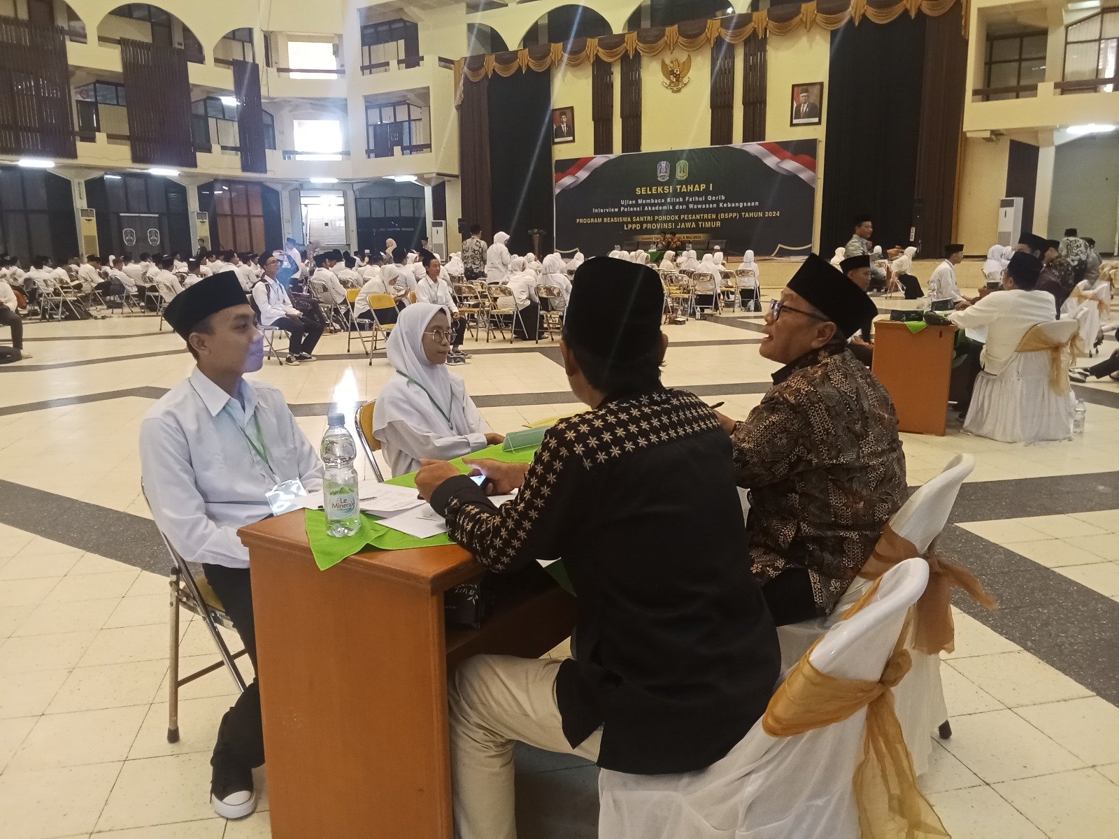 Radarjakarta.id | SURABAYA – Lembaga Pengembangan Pesantren dan Diniyah (LPPD) Provinsi Jawa Timur menggelar seleksi tahap I (satu) dengan materi ujian membaca Kitab Fathul Qorib, interview potensi akademik dan wawasan kebangsaan bagi para santri yang akan menjadi calon mahasiswa di Universitas Al-Azhar Mesir dengan beasiswa pendidikan tahun 2024.