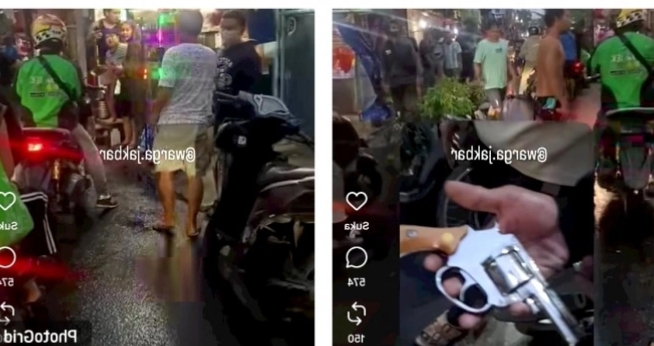 Aksi nekat kedua pria yang diduga pelaku begal ini sempat membuat panik warga sekitar. Mereka diketahui membawa senjata api rakitan saat melakukan aksinya, yang akhirnya terekam dan viral di media sosial. Video yang diunggah akun Instagram @warga.jakbar memperlihatkan kerumunan warga memadati gang sempit, sambil berteriak:
