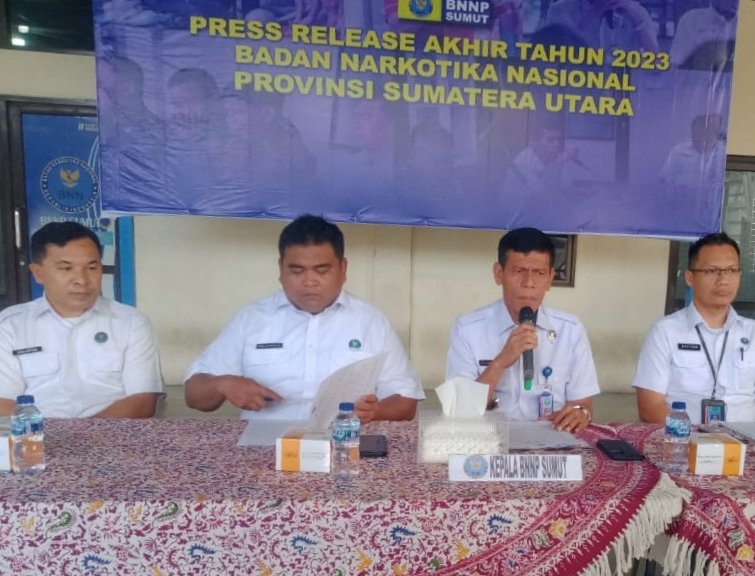Tahun 2023, BNNP Provinsi Sumatera Utara menyita narkotika jenis sabu-sabu seberat 99.560,82 gram, ganja 190.438,3 gram dan 998,5 butir pil ekstasi.
