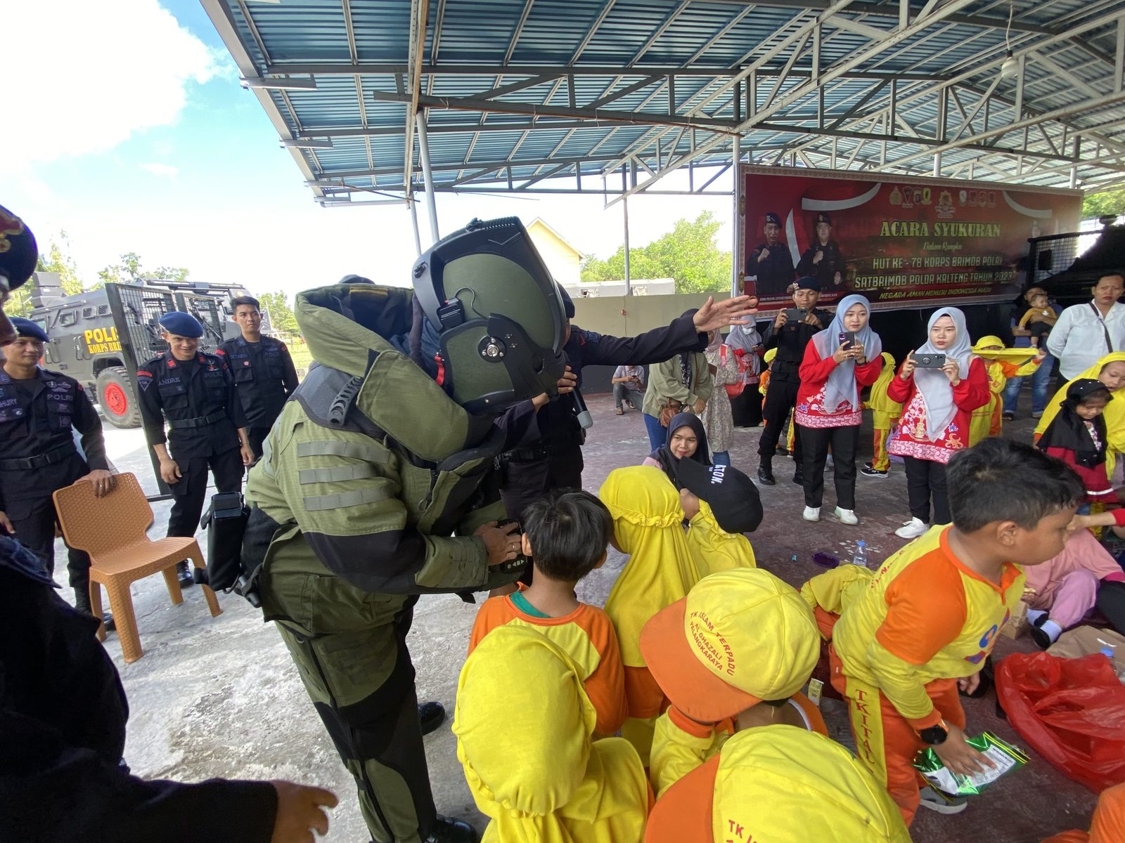 Dalam kegiatan ini, personil Brimob memberikan pengetahuan serta mengajak anak-anak TK berkeliling dengan menggunakan kendaraan Taktis serta mengenalkan peralatan dan perlengkapan yang dimiliki.