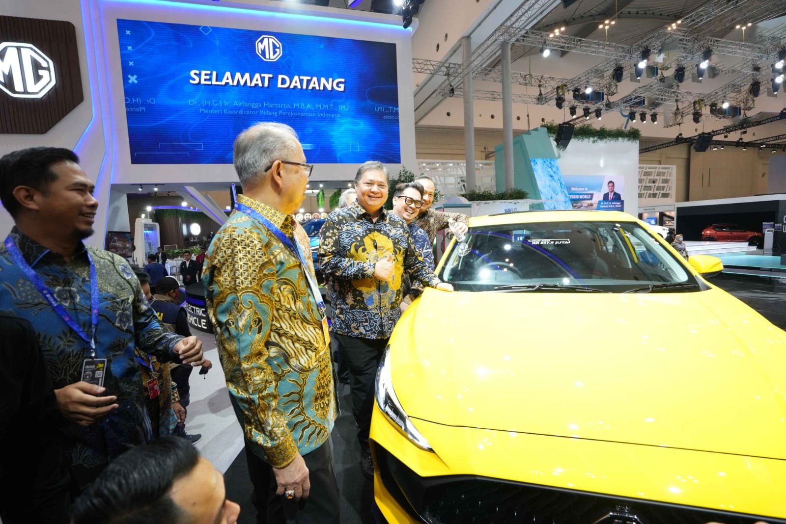 Setelah meresmikan GIIAS 2023, Airlangga Hartato berkeliling untuk meninjau booth dan menjajal mobil listrik terbaru dari merek mobil asal Inggris, Morris Garage (MG).
