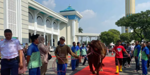 Keren! Sapi Kurban Milik Jokowi Tiba di Surabaya Disambut Red Carpet
