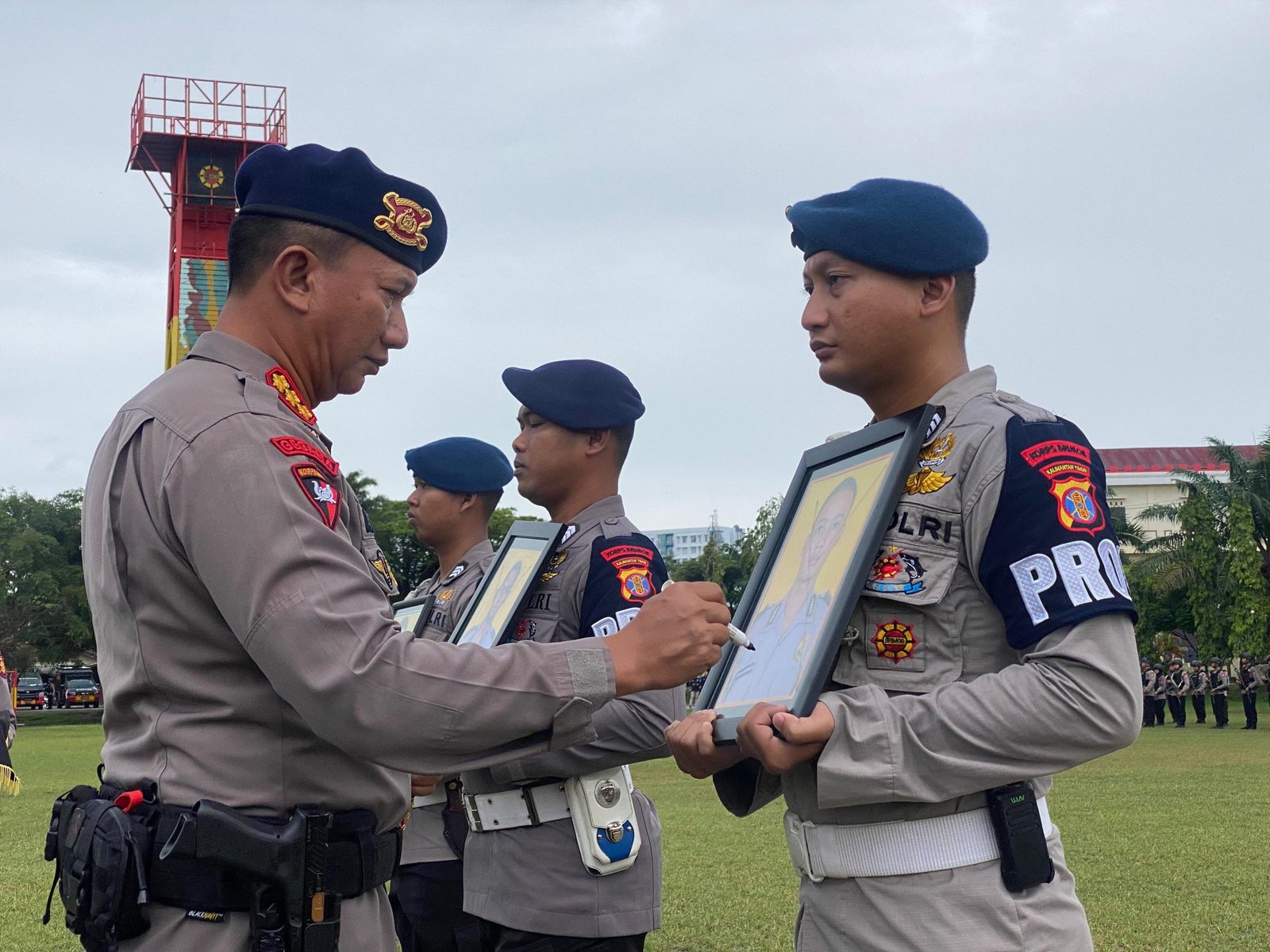Radarjakarta.id | BALIKPAPAN – Komandan Satuan Brimob Polda Kaltim Kombes Pol. Andy Rifai, S.I.K., M.H. memimpin langsung apel Pemberhentian Tidak Dengan Hormat (PTDH) 2 Personel Satuan Brimob Polda Kaltim di Lapangan M. Jasin Mako Brimob Balikpapan, Rabu (13/3/2024).