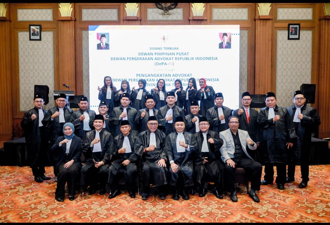 Komitmen tersebut disampaikan jajaran pimpinan DePA-RI, di antaranya Dr. Azis Zein, S.H., M.H., Sekretaris Jenderal Dr. Sugeng Aribowo, S.H., M.M., M.H., serta Dewan Kehormatan Theo Wahyu Winarto, S.H., M.H., CIL, di hadapan para Advokat baru yang dilantik.