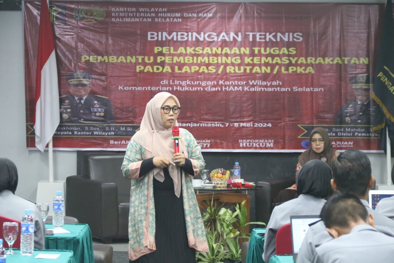 Radarjakarta.id | BANJARMASIN – Kantor Wilayah Kementerian Hukum dan HAM Kalimantan Selatan melalui Divisi Pemasyarakatan menggelar Bimbingan Teknis (Bimtek) Pelaksanaan Tugas Pembantu Pembimbing Kemasyarakatan (PPK) Tahun Anggaran 2024 di Ballroom Hotel Palm Banjarmasin, Rabu (08/05/2024).
