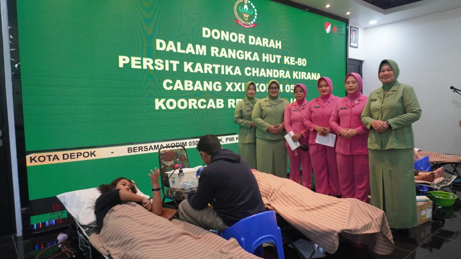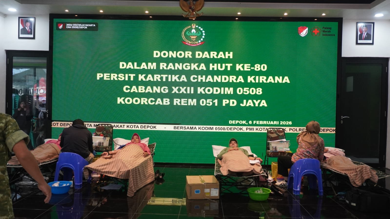 Turut hadir pula Bintara, Tamtama, PNS, ibu-ibu Persit, serta Tim PMI Kota Depok sebagai mitra pelaksana kegiatan.