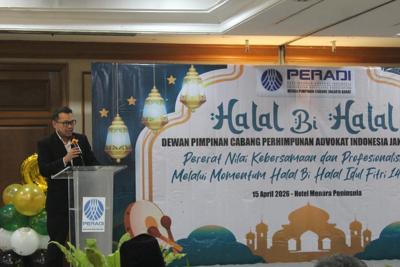 JAKARTA, Radarjakarta.id – Dewan Pimpinan Cabang Perhimpunan Advokat Indonesia (Peradi) Jakarta Barat memanfaatkan momentum Halal Bihalal Idulfitri 1447 H/2026 sebagai ajang konsolidasi internal dan penguatan program kerja organisasi. Kegiatan tersebut digelar di Hotel Menara Peninsula, Jakarta Barat, Rabu (15/4/2026).
