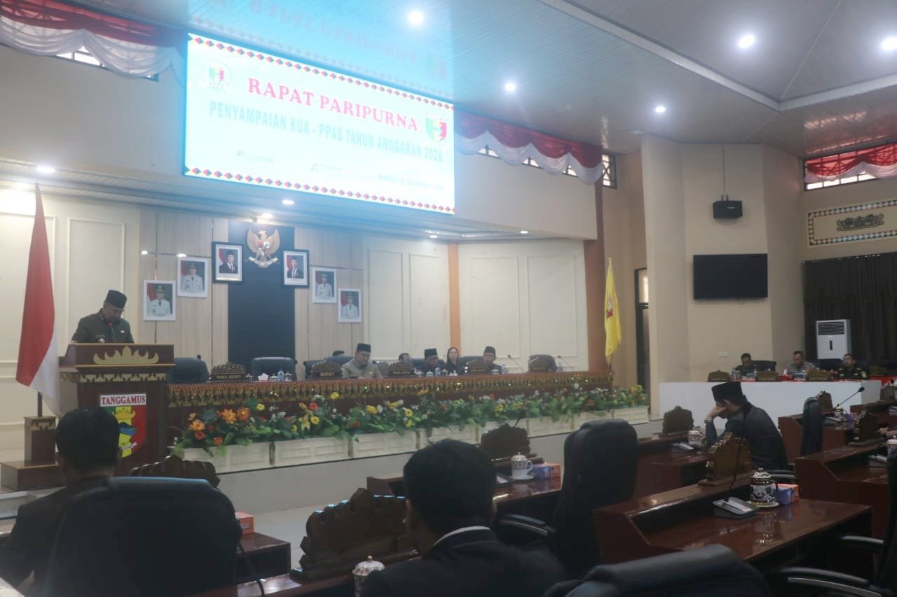 TANGGAMUS, Radarjakarta.id – Dewan Perwakilan Rakyat Daerah (DPRD) Tanggamus menggelar rapat Paripurna dengan agenda penyampaian Rancangan Kebijakan Umum Anggaran (KUA) dan Rancangan Prioritas Plafon Anggaran Sementara (PPAS) Tahun Anggaran 2026 digelar di Gedung DPRD Tanggamus, Senin yang lalu (6/10/2025).