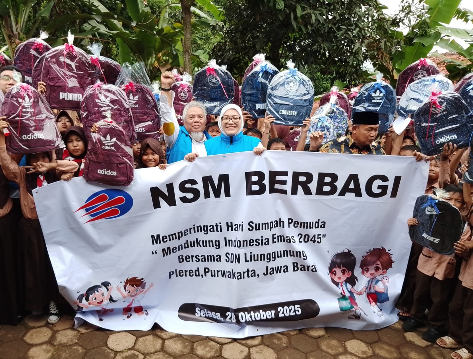 Dalam kegiatan ini, NSM memberikan alat-alat sekolah berupa tas sekolah kepada anak-anak dari kelas 1 SD hingga kelas 6 SD. Pihak NSM berharap bantuan tersebut dapat berkontribusi bagi pembangunan manusia menuju Indonesia Emas 2045.