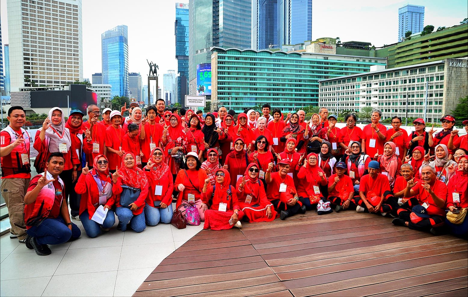 Sebanyak 60 lansia perempuan dari berbagai wilayah di Jakarta tampak antusias mengikuti rangkaian kegiatan yang dipusatkan di kawasan Bundaran HI, Jakarta Pusat, Selasa (17/2/2026).