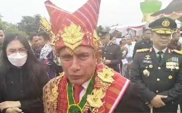 Dalam kesempatan ini, Edy Rahmayadi bertindak sebagai Inspektur Upacara dengan mengenakan pakaian adat Suku Karo.