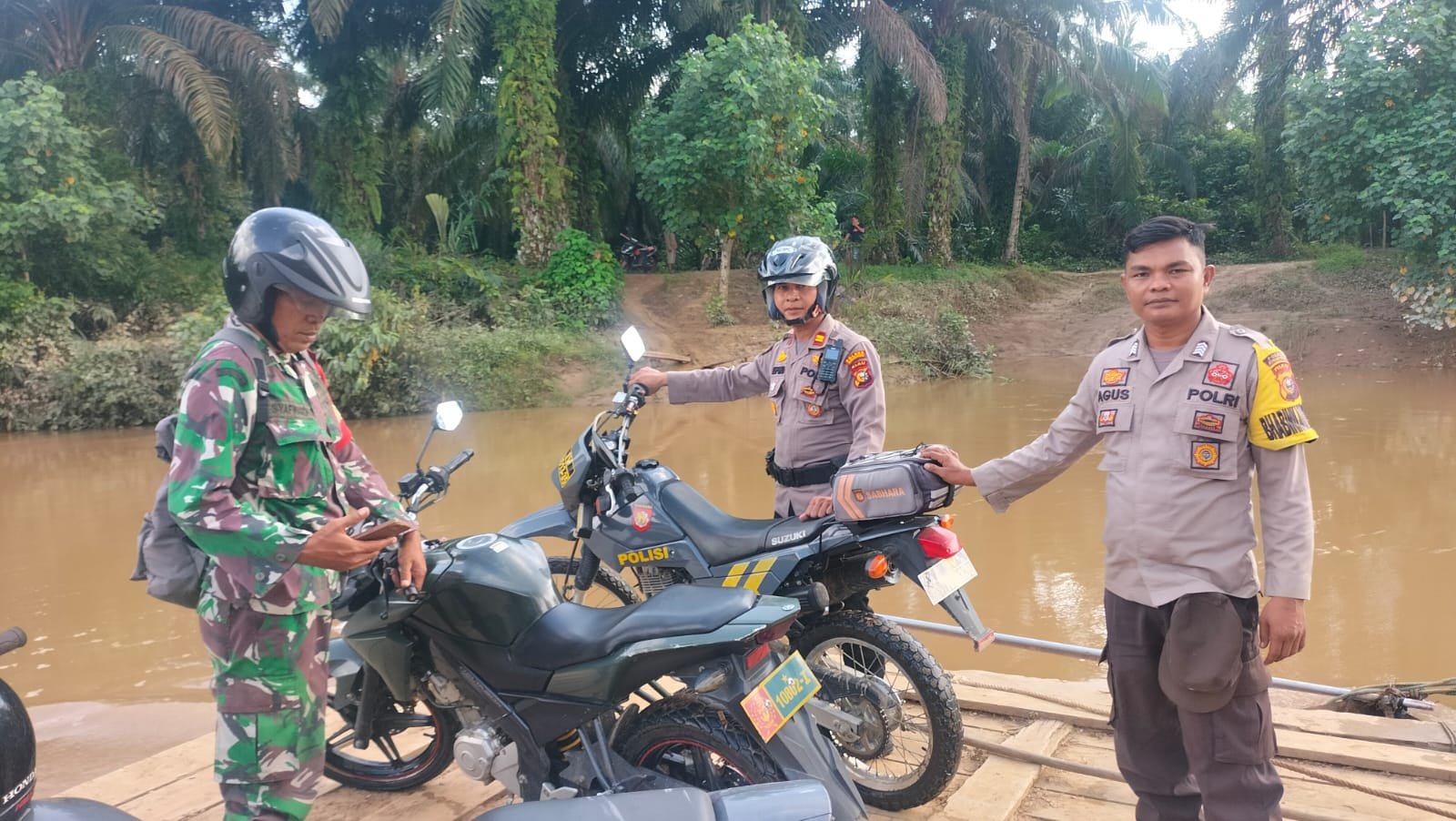 Hebat..! Personil Polsek Tambusai Lewat Jalan Berlumpur Dan Naiki Getek Dalam Giat Colling Sistem Polri