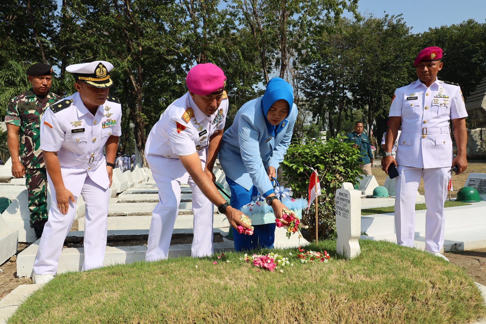 “Kami prajurit-prajurit TNI Angkatan Laut ditemani rekan-rekan kita dari TNI Angkatan Darat, TNI Angkatan Udara dan Kepolisian, serta dari Forkopimda Jatim melaksanakan ziarah di TMP 10 November sebagai rangkaian HUT TNI AL yang diperingati setiap tanggal 10 September. Selain ziarah, TNI AL akan menggelar Naval Base Open Day (NBOD) di Koarmada II Ujung Surabaya pada Sabtu besok yang dibuka untuk umum, dan berbagai kegiatan puncak HUT Ke-79 TNI AL di Surabaya dan Jakarta,” kata Letjen Marinir Nur Alamsyah.