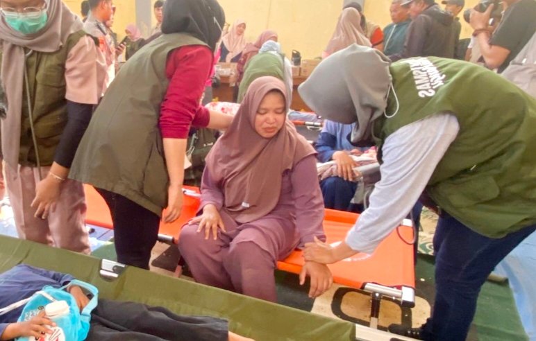 Di posko penanganan, petugas kesehatan menyebut sebagian besar pasien mengeluhkan gejala mual, pusing, hingga sesak napas.