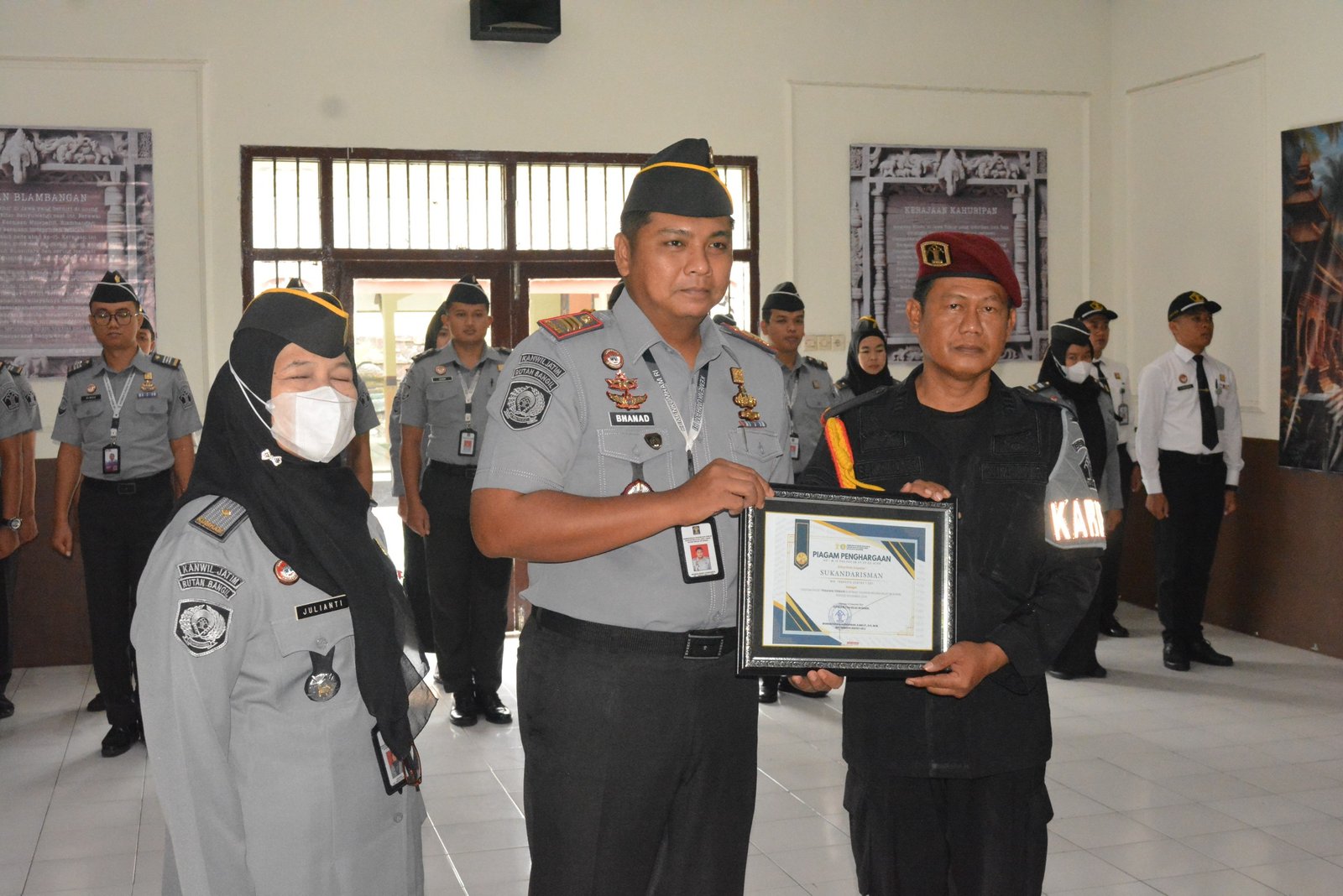 Radarjakarta.id | PASURUAN – Senin (02/12) Rutan Kelas IIB Bangil Kanwil Kemenkumham Jatim memberikan penghargaan kepada pegawai teladan sebagai bentuk apresiasi atas dedikasi dan kinerja unggul yang mereka tunjukkan. Penghargaan ini menjadi cerminan dari komitmen Rutan Bangil dalam membangun lingkungan kerja yang proaktif dan berorientasi pada prestasi. Melalui proses yang cermat, beberapa pegawai yang menonjol dalam menjalankan tugas mereka dengan baik dipilih untuk menerima penghargaan ini, menginspirasi rekan-rekan mereka untuk mencapai standar yang sama.