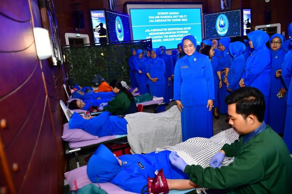 Radarjakarta.id | DEPOK — Dalam rangka menyambut Hari Ulang Tahun (HUT) ke-77 Jalasenastri Tahun 2023, TNI Angkatan Laut menggelar kegiatan Donor Darah yang dihadiri langsung oleh Ketua Umum Jalasenastri Ny. Fera Muhammad Ali bertempat di Auditorium Denma Mabesal, Cilangkap, Jakarta Utara, Senin (07/08/2023).