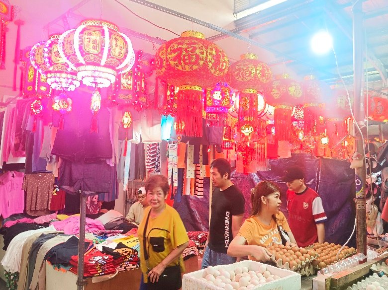 Tak hanya itu, aroma kue keranjang, jajanan khas Imlek, serta beragam kuliner Tionghoa turut menambah daya tarik. Suasana pasar pun tampak ramai sejak pagi hingga sore hari.