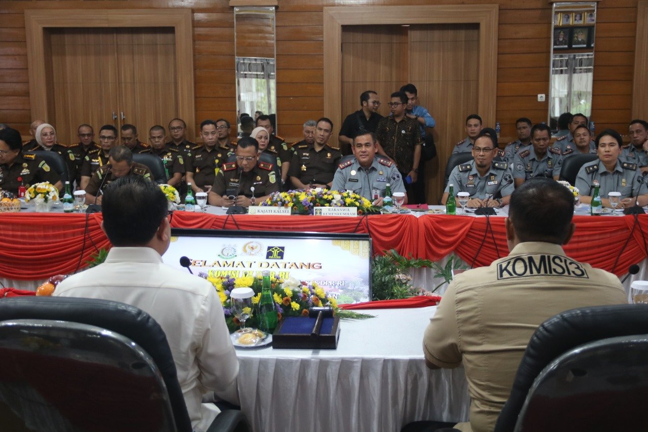 Radarjakarta.id | BANJARMASIN – Kantor Wilayah Kementerian Hukum dan HAM (Kemenkumham) Kalimantan Selatan (Kalsel) bersama Kejaksaan Tinggi (Kejati) Kalsel duduk bersama dengan Komisi III DPR RI dalam rangka Rapat Kunjungan Kerja Reses Masa Persidangan IV Tahun Sidang 2023-2024.