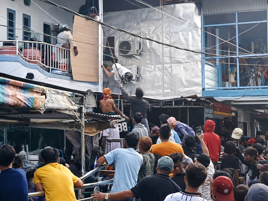 Massa merusak kafe yang diduga tempat peredaran sabu dan prositusi di Panipahan, Rohil Sabtu (11/4). Foto Istimewa