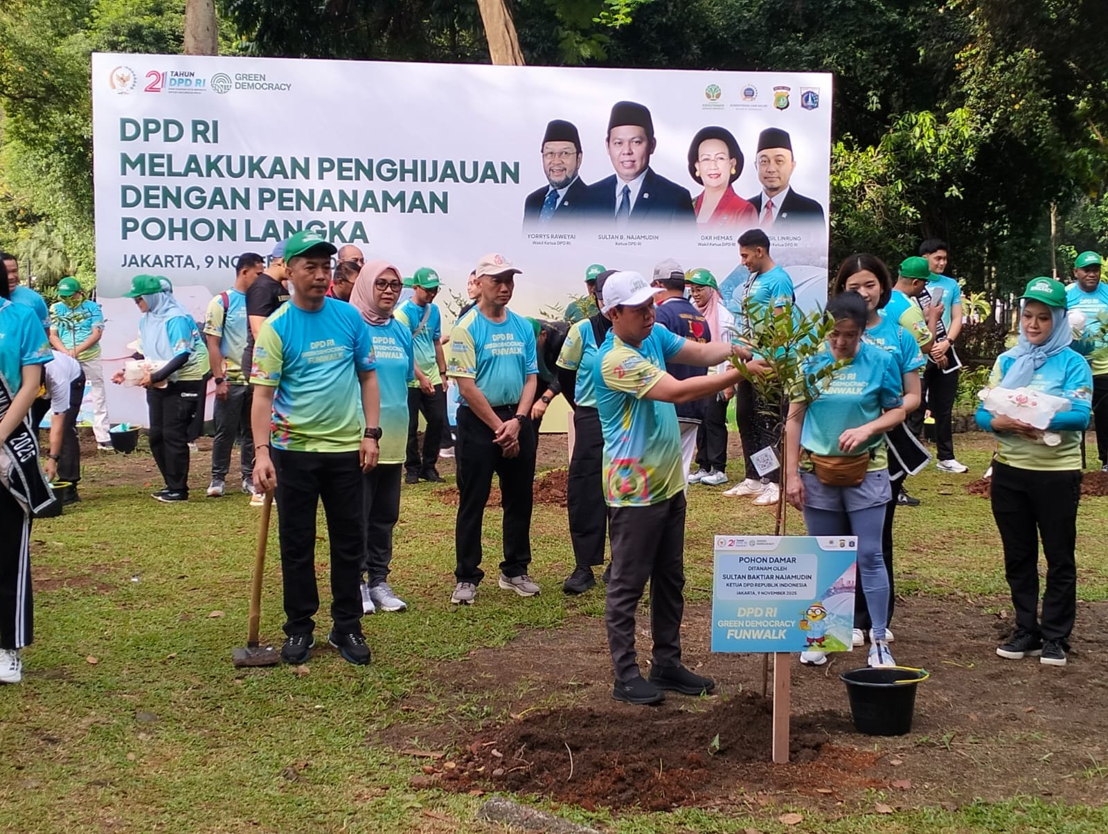 Sebagai bagian dari kegiatan bertajuk Fun Walk Green Democracy, para pimpinan dan anggota DPD RI bersama masyarakat melakukan aksi penanaman pohon di area sekitar kompleks parlemen. Langkah tersebut disebut Sultan sebagai simbol nyata komitmen DPD RI terhadap pelestarian lingkungan sekaligus keberlanjutan demokrasi nasional.