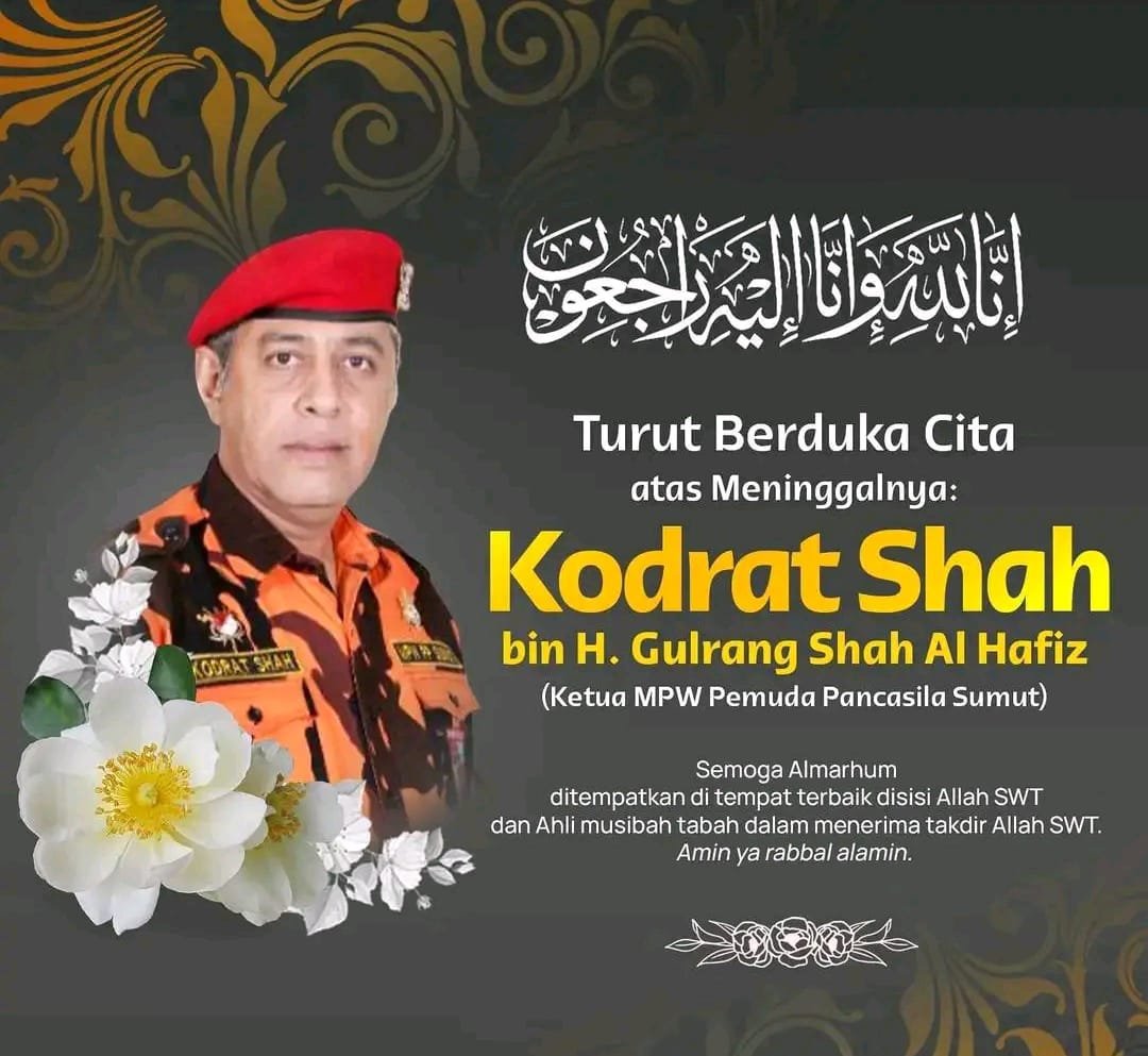 Ketua MPW Pemuda Pancasila Sumut Kodrat Shah Meninggal Dunia