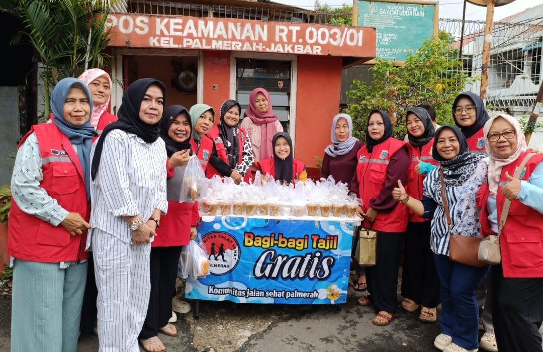 JAKARTA, RadarJakarta.id – Semangat berbagi di bulan suci Ramadhan 1447 Hijriah terus menggema di tengah masyarakat. Komunitas Jalan Sehat bersama kader PKK dan kelompok Dasa Wisma (Dawis) RW 01 Kelurahan Palmerah menggelar kegiatan sosial dengan membagikan takjil gratis kepada para pengguna jalan di Jalan H. Mudham, Kelurahan Palmerah, Kecamatan Palmerah, Jakarta Barat, Jumat (6/3/2026).