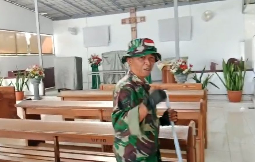 Pendeta GPIB Bambukuning Pendeta Rudianto, memberikan apresiasi kepada Kodim 0508 Depok, Koramil 04 Bojonggede, Satpol PP dan masyarakat yang turut membantu bakti karya tersebut.
