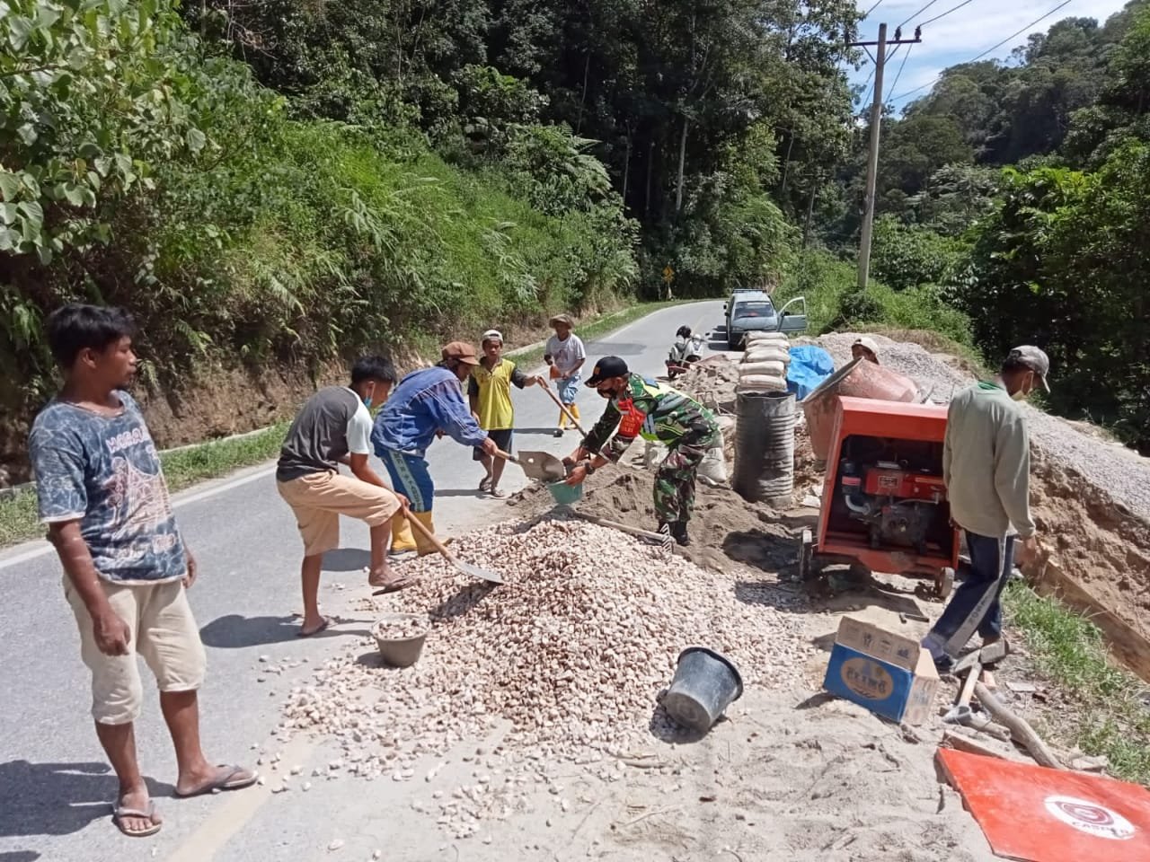 Kegiatan gotong royong dalam pembangunan jalan desa, kebersamaan dan ikatan persaudaraan atas kepentingan bersama menjadi satu, ketika semua masyarakat desa terlibat aktif, tanpa harus melihat tatanan dan golongan yang ada. Hal inilah yang dihimbau Serda kiansar saragih kepada warga binaanya di Desa Simasom.|Wardana*