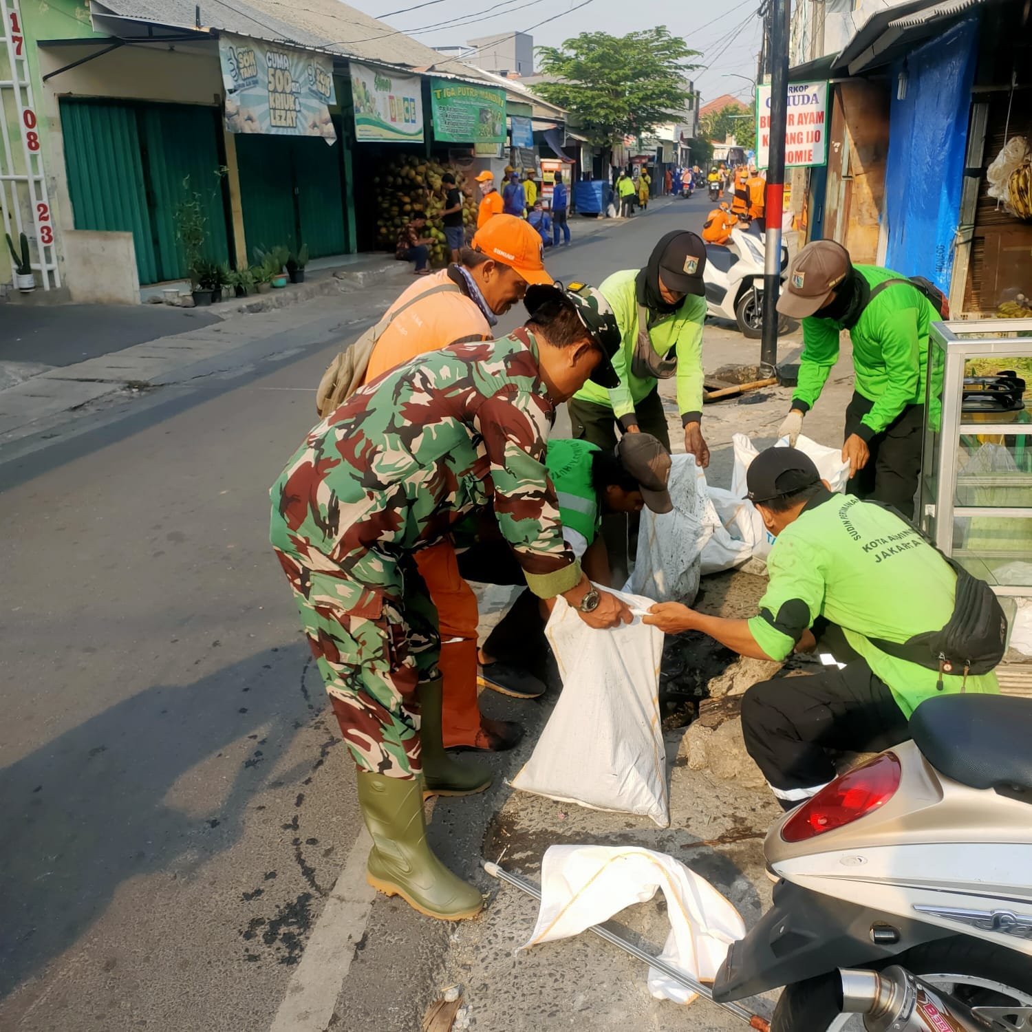 Koramil Cipayung Kerja Bakti Bersama Warga Bersihkan Saluran Air