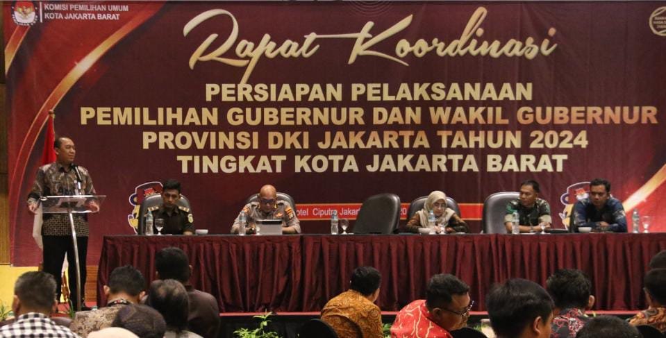 Radarjakarta.id | JAKARTA – Komisi Pemilihan Umum (KPU) Kota Jakarta Barat mengadakan rapat koordinasi persiapan pemilihan gubernur dan wakil gubernur DKI Jakarta Tahun 2024, yang digelar di Hotel Ciputra, Tanjung Duren Utara, Kecamatan Grogol Petamburan, Kamis (20/6/2024).