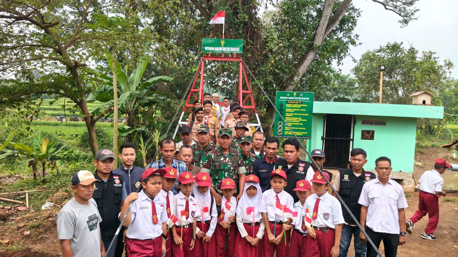 Kegiatan video conference (vicon) launching pembangunan 218 titik Jembatan Gantung Garuda di seluruh Indonesia ini juga dilaksanakan di wilayah teritorial Kodam Jaya/Jayakarta Korem 051/Wkt, Kodim 0509/Kab. Bekasi, tepatnya di Jembatan Gantung Garuda Manggala Sungai Cikarang Dua, Kampung Bojong RT 02/RW 04, Desa Kertarahayu, Kecamatan Setu.
