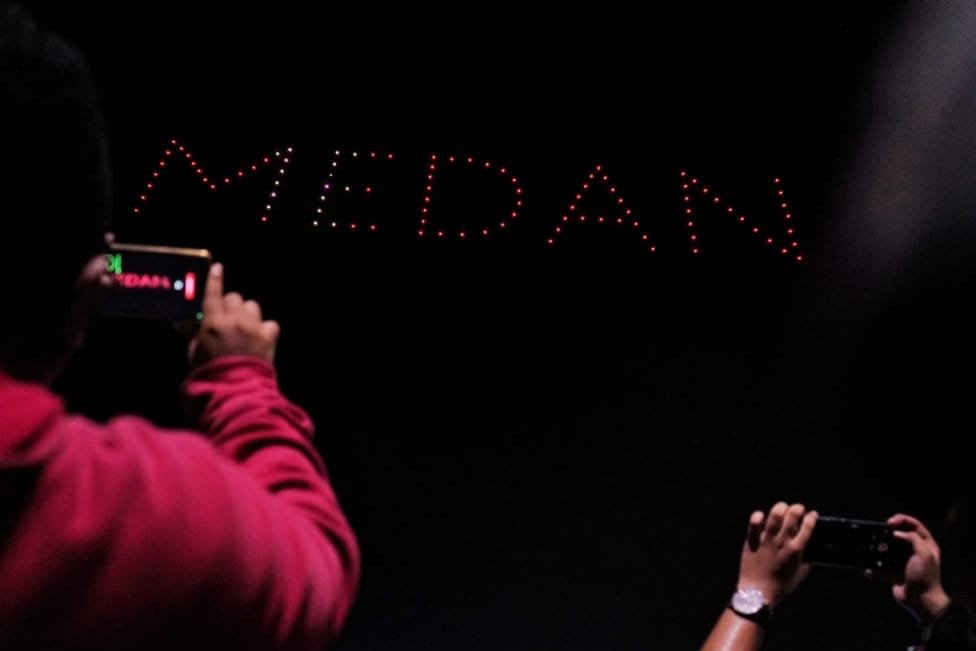 Radarjakarta.id | MEDAN – Pertunjukan drone light show mewarnai malam pergantian tahun baru di Kota Medan. Atraksi spektakuler dari puluhan drone tersaji dalam acara Pesona Harmoni “Semarak Malam Pergantian Tahun 2023-2024 Kolaborasi Medan Berkah” yang diselenggarakan Pemko Medan melalui Dinas Pariwisata Kota Medan, di Lapangan Benteng Medan, Minggu (31/12/2023) malam.