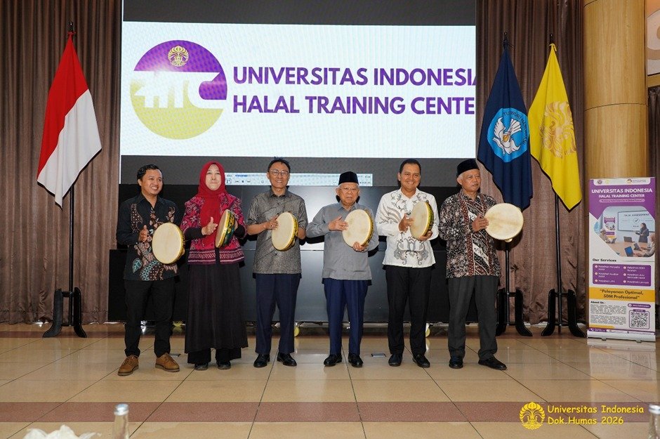 DEPOK, Radarjakarta.id — Universitas Indonesia resmi meluncurkan UI Halal Training Center (UIHTC) sebagai langkah strategis dalam memperkuat sumber daya manusia (SDM) halal yang profesional, kompeten, dan berdaya saing global. Peresmian yang digelar di Aula Terapung Kampus UI Depok, Rabu (12/2/2026), ditandai dengan prosesi simbolis tabuh rebana oleh para pimpinan dan tamu kehormatan.
