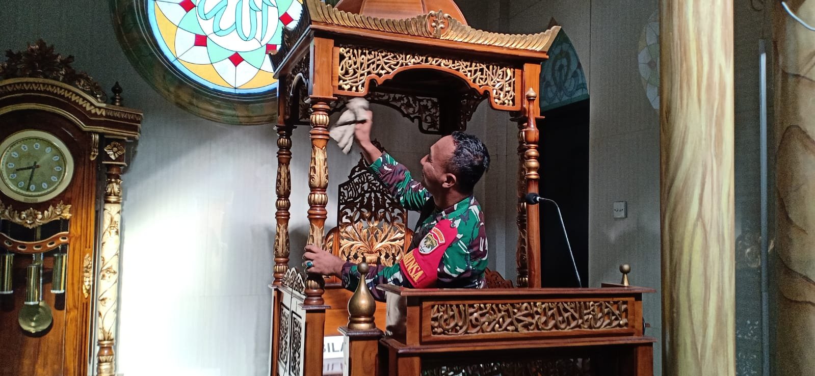 Merawat Kebersihan Rumah Ibadah Oleh Koramil 06/Cakung Giat Karya Bakti