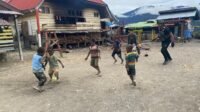 Satgas Yonif 509 Kostrad Berbagi Keceriaan Ajak Main Bola Anak-anak Papua