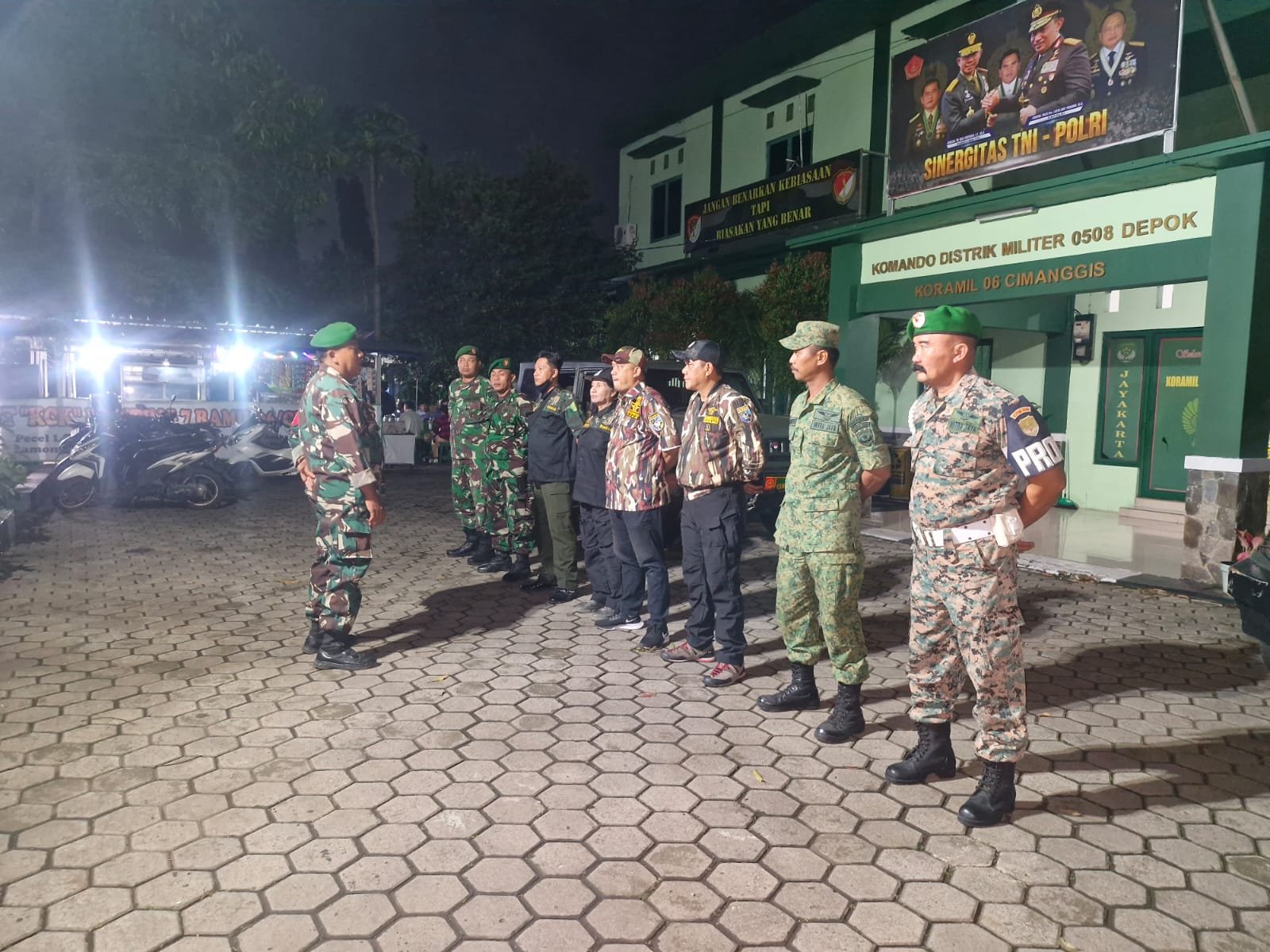 Sebanyak 11 personel dikerahkan dalam patroli ini, terdiri dari tiga anggota Koramil 06/Cimanggis dipimpin Pelda Sutarna, serta delapan personel gabungan dari Mitra Jaya, GM FKPPI Tapos, FORKABI Cimanggis, dan HIPAKAD. Mereka didukung dua unit kendaraan taktis Maung, dua unit motor, serta perlengkapan keamanan standar.