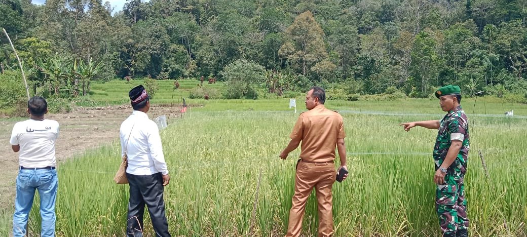 Radarjakarta.id | TAPUT – Babinsa Koramil 24/Pahae Julu jajaran Kodim 0210/TU Sertu Rohim bersama dinas pertanian melaksanakan kegiatan pendampingan memantau perkembangan tanaman sawah padi yang bertempat di Desa Simanampang Kecamatan Pahae Julu Kabupaten Tapanuli Utara, Kamis (04/07/2024).
