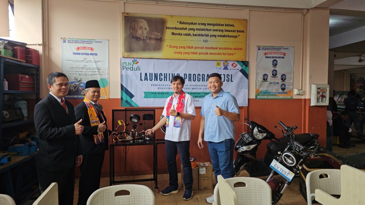JAKARTA, Radarjakarta.id – PLN UP2B DKI Jakarta dan Banten meluncurkan program “Upgrading Konversi Kendaraan Listrik” di SMK Dinamika Pembangunan 1 Jakarta. Kegiatan ini merupakan bagian dari Tanggung Jawab Sosial dan Lingkungan (TJSL) dalam upaya mendukung penguatan kapasitas sumber daya manusia di bidang transisi energi.