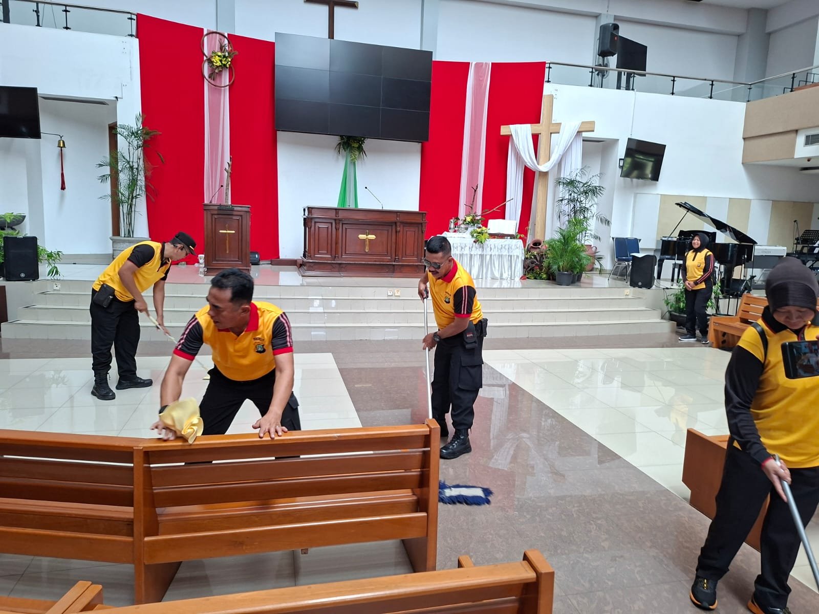 Sementara itu, Pendeta Yosua Agung Nugroho Hadiusodo dari GKI Cinere menyampaikan rasa haru atas keterlibatan langsung polisi dalam merawat tempat ibadah umat Kristen.