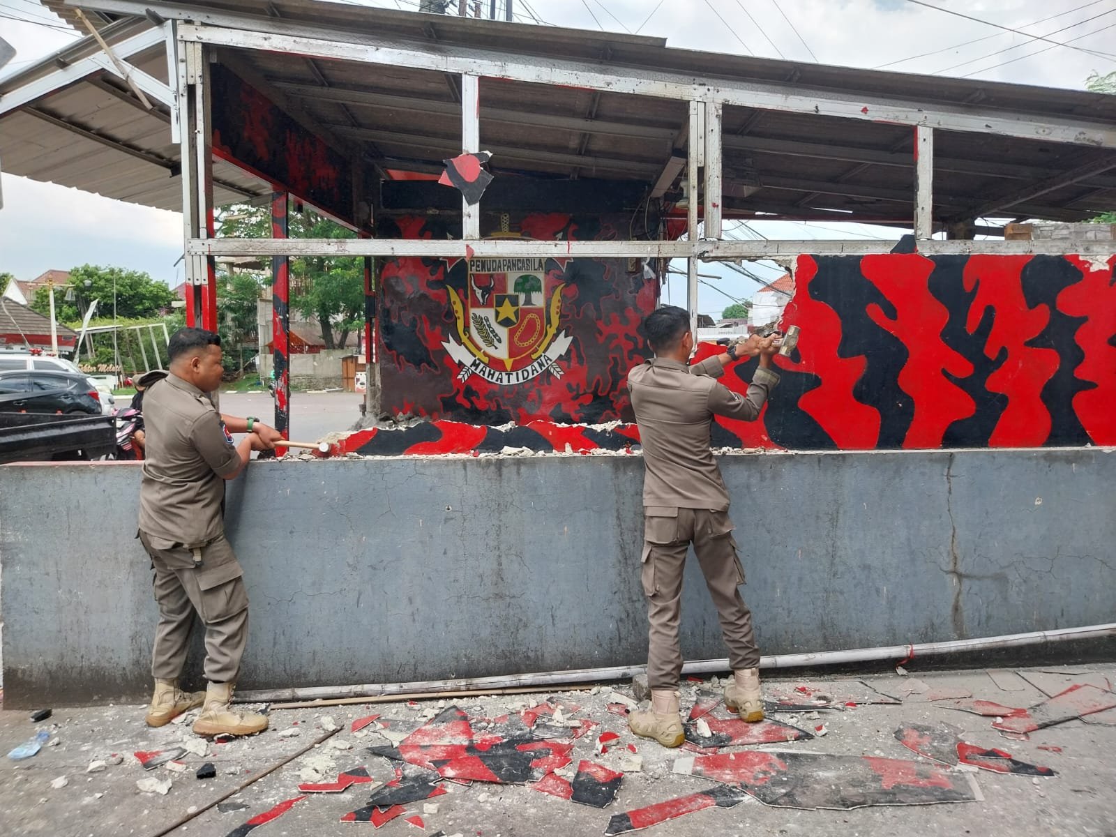 “Hari ini kami lakukan penertiban terhadap bendera dan satu posko ormas. Target kami adalah simbol-simbol yang meresahkan masyarakat,” jelasnya.