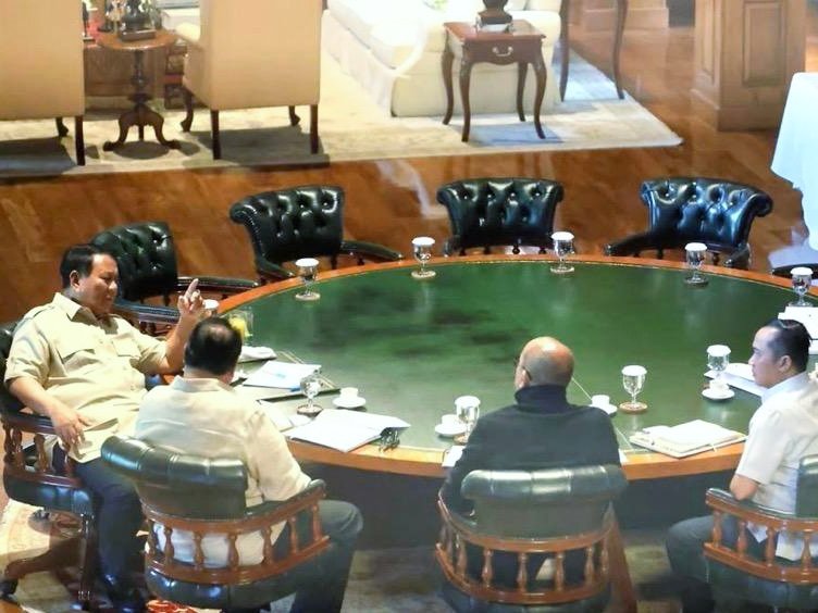 Dari foto yang beredar, tampak Prabowo Subianto dan para menteri duduk mengelilingi meja bundar, menandakan suasana serius dan strategis.