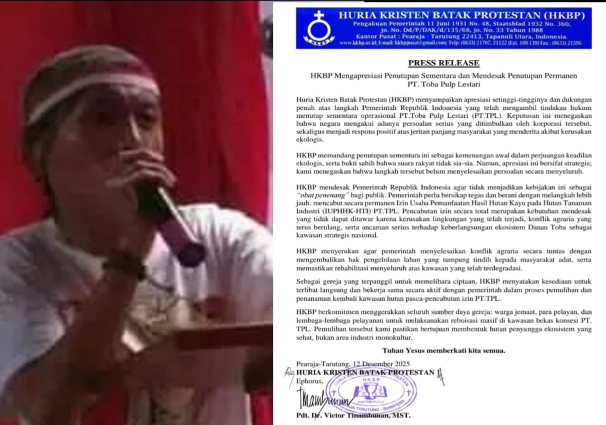 “Apakah pantas seorang Ephorus HKBP dalam menyelesaikan konflik masyarakat dengan PT TPL dengan membunuh nasib hidup puluhan ribu masyarakat, sementara para karyawan atau buruh di PT TPL juga banyak yang menjadi Jemaat HKBP,” ujar Fredi.