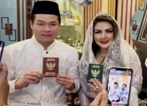 Sang suami yang juga mengenakan beskap putih dan senada dengan sang istri. Mereka berpose manis sembari menunjukan buku nikah keduanya.***