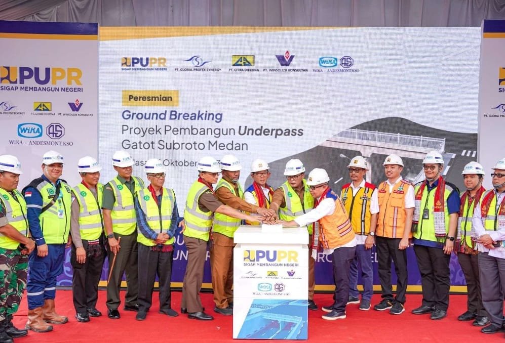 Peletakan batu pertama atau groundbreaking proyek pembangunan underpass di Jalan Gatot Subroto Kota Medan resmi dimulai, Selasa (31/10/2023).
