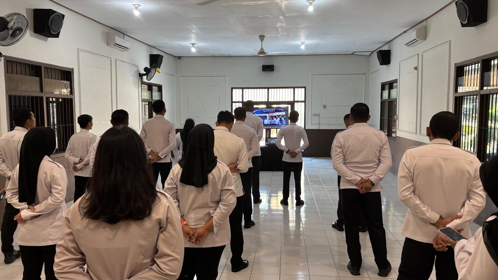 Kegiatan yang berlangsung secara luring di lapangan Kementerian Hukum ini juga diikuti secara daring melalui Zoom Meeting oleh seluruh UPT di lingkungan Kementerian Imigrasi dan Pemasyarakatan. Hadir dalam kesempatan tersebut sejumlah pejabat tinggi negara, antara lain Menteri Koordinator Bidang Hukum, HAM, Imigrasi, dan Pemasyarakatan, Bapak Yusril Ihza Mahendra; Wakil Menteri Imigrasi dan Pemasyarakatan, Bapak Silmi Karim; beserta seluruh jajaran pejabat eselon I, II, III, pejabat struktural, dan ASN di lingkungan kementerian.